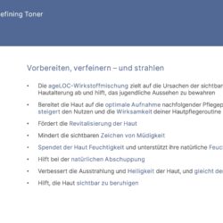 Dank der exklusiven ageLOC-Wirkstoffmischung wirkt der Refining Toner an den Ursachen sichtbarer Hautalterung. Der integrierte PrepPlus-Komplex verbessert die Aufnahmefähigkeit der Haut, sodass nachfolgende Pflegeprodukte noch besser wirken können.