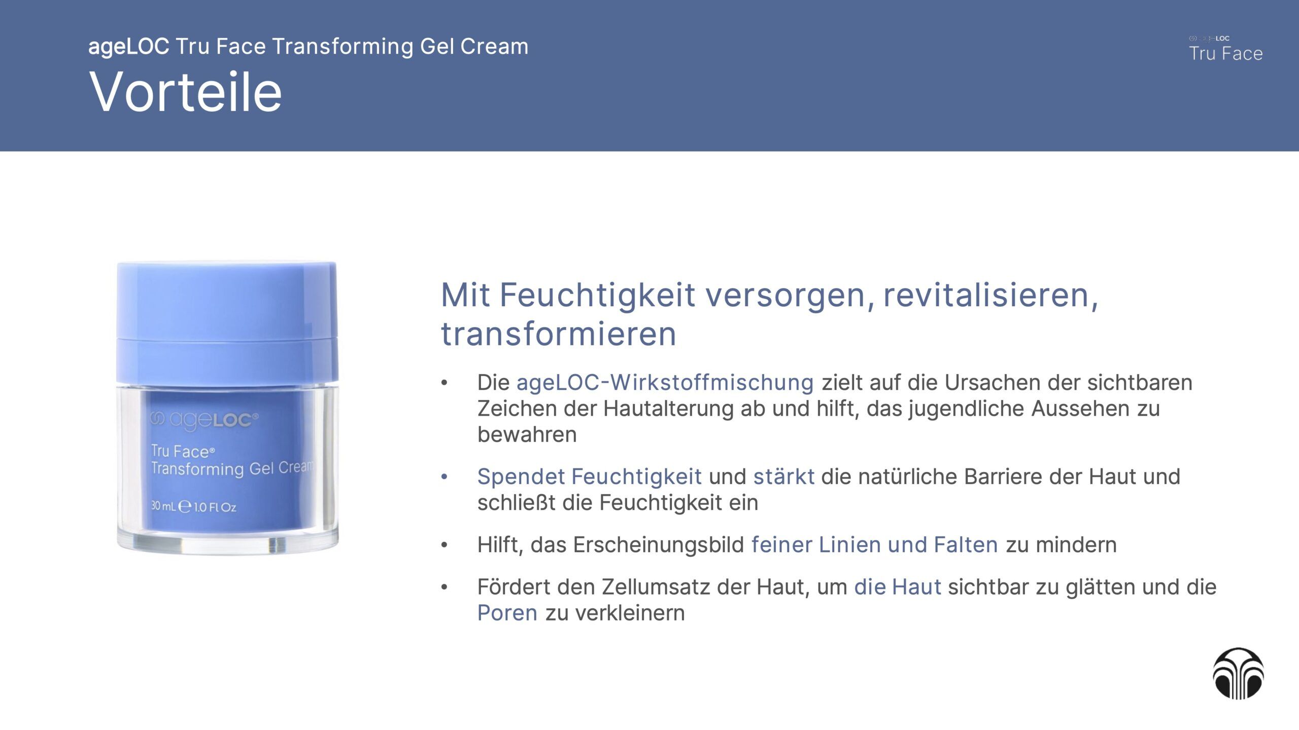 Die ageLOC Tru Face Transforming Gel Cream ist eine hochentwickelte Feuchtigkeitscreme, die deine Haut intensiv hydratisiert und gleichzeitig sichtbar glättet. Mit ihrer luxuriösen Gel-Textur verbindet sie leichte Frische mit intensiver Pflege – ideal für die tägliche Anwendung.