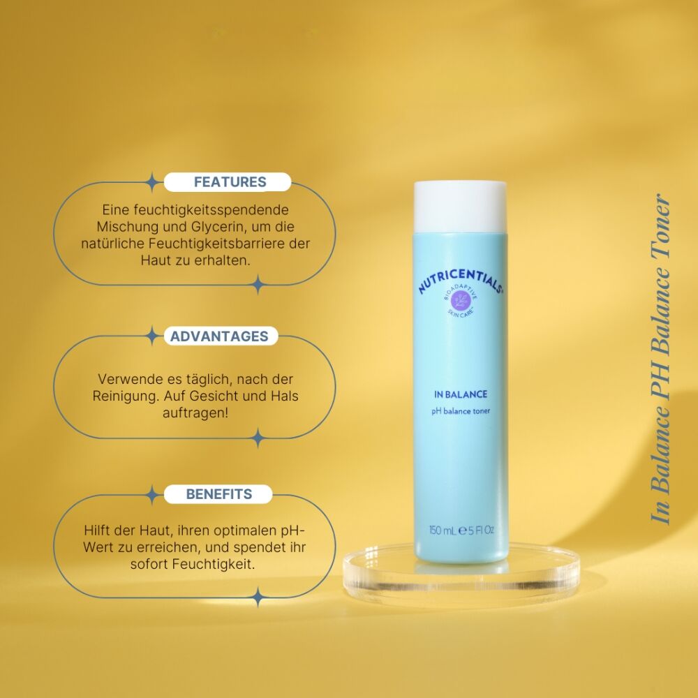 Nu Skin Nutricentials In Balance pH Balance Toner nach der Gesichtsreinigung mit einem Wattepad auf Gesicht und Hals auftragen. Die Flasche vor jedem Gebrauch schütteln.