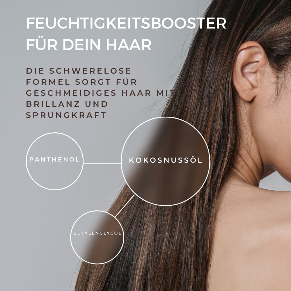 Aqua, Butylene Glycol, Dimethicone, Hydrogenated Polydecene, Cetyl Alcohol, Stearyl Alcohol, Behentrimonium Methosulfate, PPG-3 Benzyl Ether Myristate, Undecane, Isoamyl Cocoate, Cocos Nucifera Oil, Dimethicone PEG-8 Meadowfoamate, Hydrolyzed Vegetable Protein PG-Propyl Silanetriol, Magnesium Nitrate, Sodium PCA, Panthenol, Tocopheryl Acetate, Tocopherol, Distearyldimonium Chloride, Isopropyl Alcohol, Magnesium Chloride, Tetrasodium EDTA, Disodium EDTA, Citric Acid, Tridecane, Parfum, Sodium Benzoate, Phenoxyethanol, Potassium Sorbate, Methylchloroisothiazolinone, Methylisothiazolinone, Hexyl Cinnamal, Linalool, Limonene.
