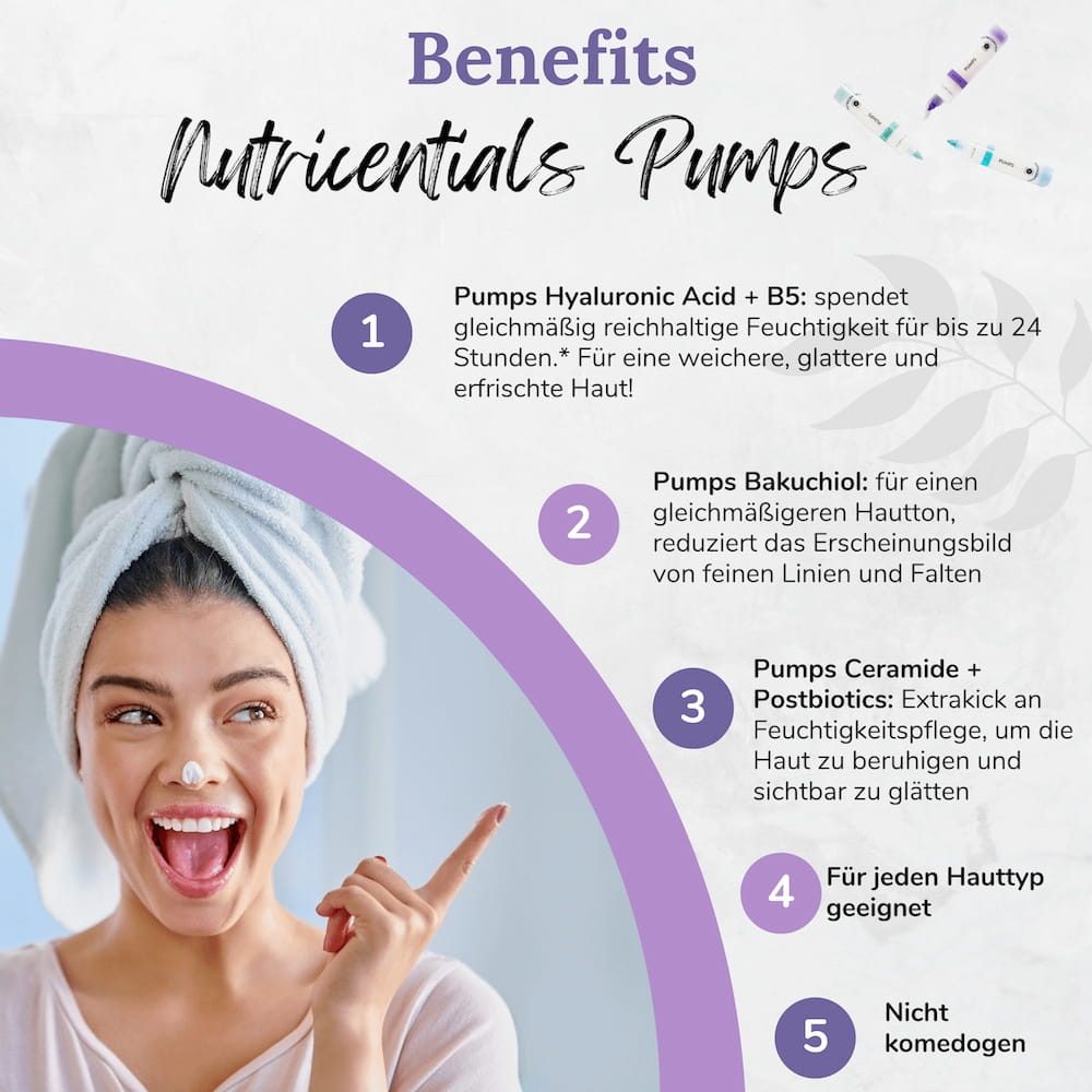 Die Nuskin Nutricentials Pumps Booster bieten eine umfassende Lösung für Feuchtigkeit, Glättung und Verjüngung der Haut, geeignet für jeden Hauttyp!