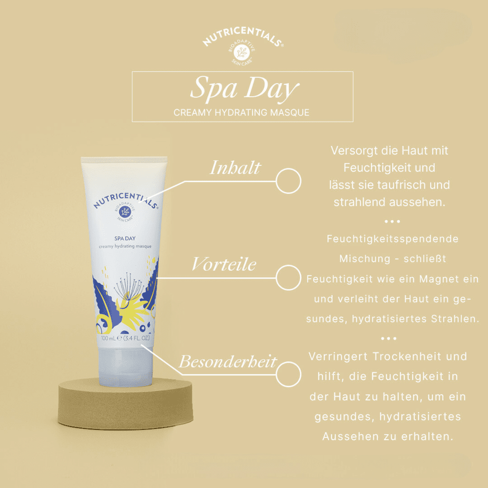 Wähle einen Nu Skin Cleanser, mit dem du deine Haut reinigst und anschließend vorsichtig abtrocknest. Trage die Maske nach der Reinigung großzügig auf dein Gesicht und Hals auf. Lass sie für 10 Minuten einwirken und wasche sie dann mit warmem Wasser ab oder nimm sie mit einem Tuch ab. Zum Schluss verwende ein Gesichtswasser und eine Feuchtigkeitspflege von Nu Skin, die du bevorzugst. Diese Routine führe bitte zweimal pro Woche durch.